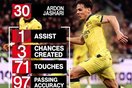 [流言板]萨卡本场打进1球,5过人1关键传球3拦截,对抗16胜11
